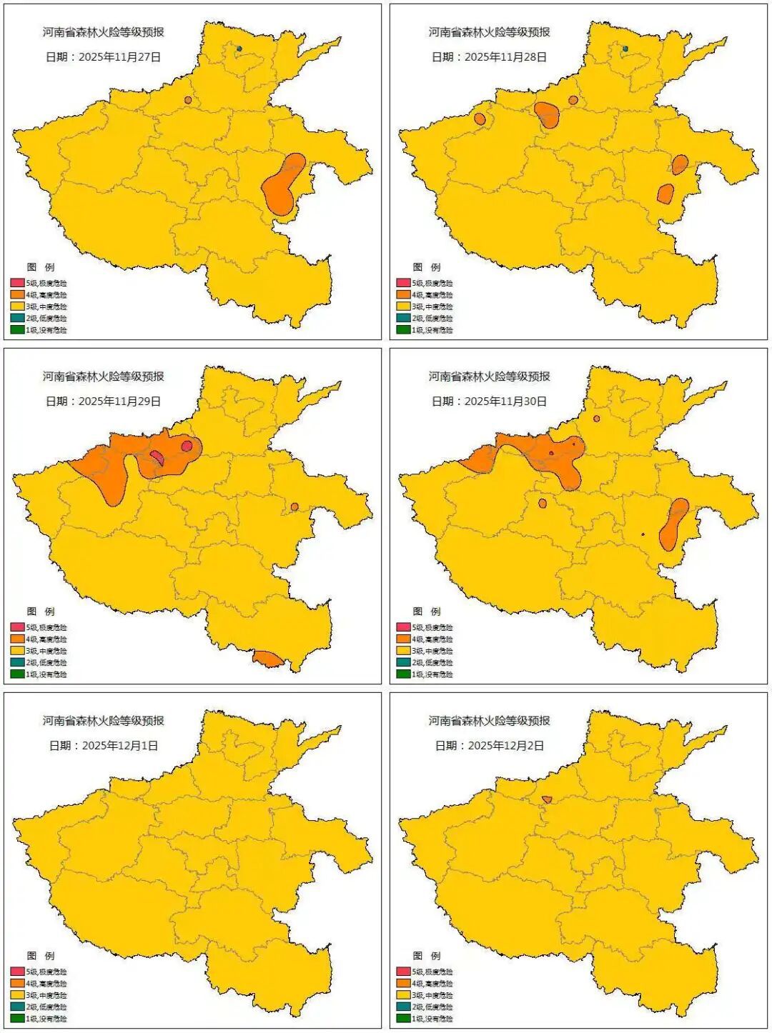 风干物燥,未来六天全省森林火险气象等级持续较高,注意野外用火安全,不携带火种进入林区,避免森林火灾的发生。