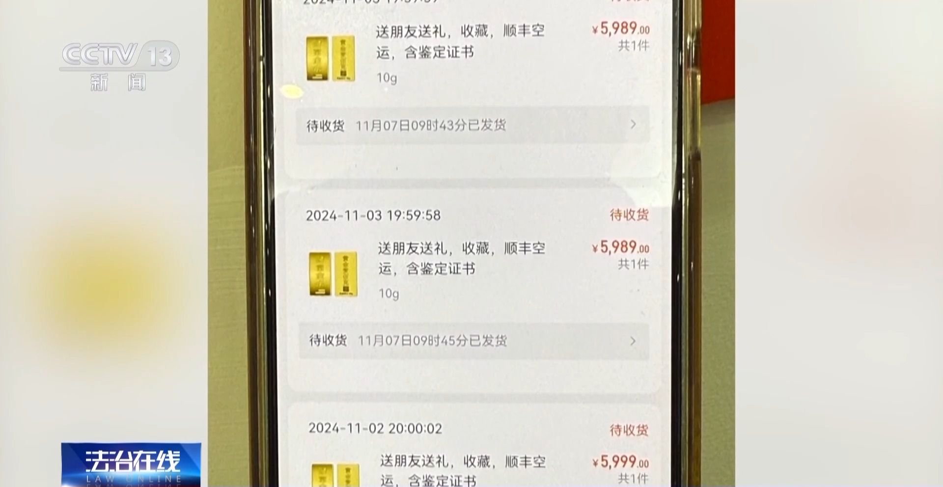 张女士:说这是一个新平台,现在买黄金有补贴之类的,我朋友就问他到哪里去买,他就拉我朋友进一个群。我朋友进去了之后,他们都说抢到了,也发货了,然后朋友就跟着买了。