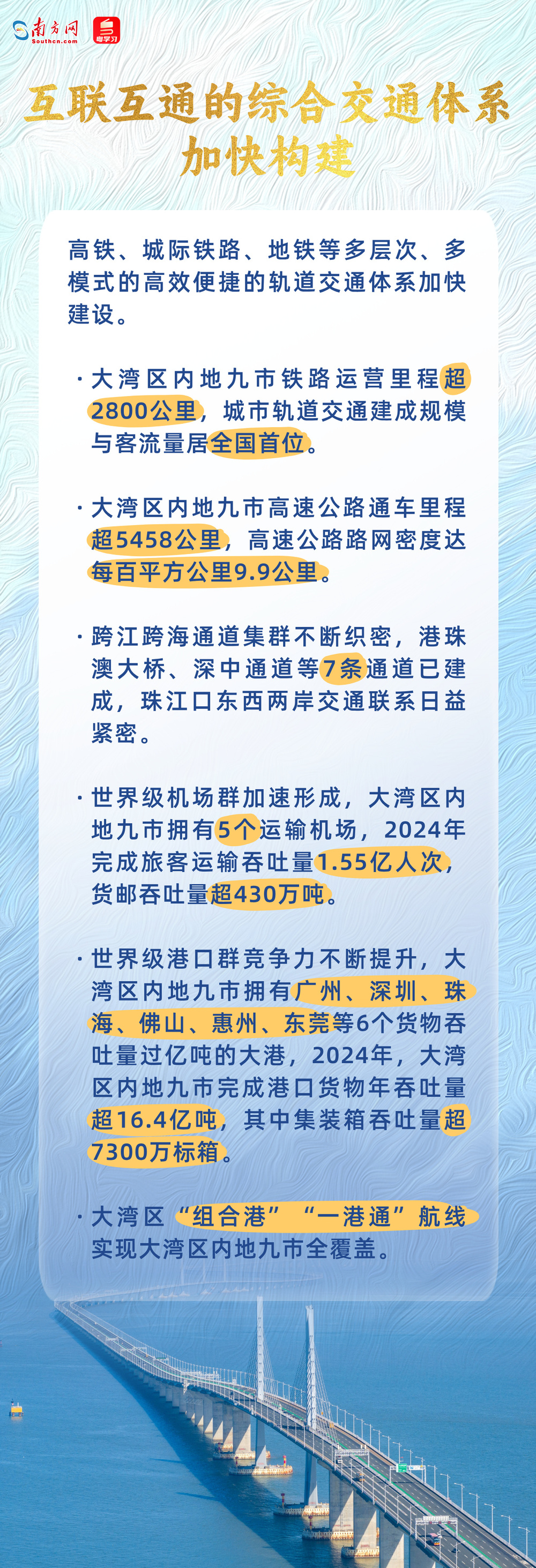 12月4日,《广东省人民代表大会常务委员会关于促进粤港澳大湾区内地九市内涵式高质量发展的决定》新闻发布会在广州举行。省发展改革委副主任、省大湾区办常务副主任朱伟在会上介绍,2024年大湾区内地九市GDP总量达到11.54万亿元,经济总量占全省八成以上,支撑广东连续36年经济规模稳居全国首位,为广东乃至全国高质量发展作出了积极贡献。
