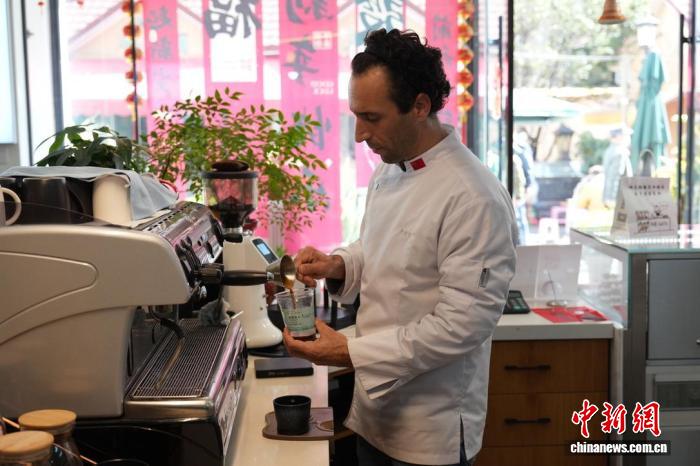 2025年1月13日,李逍遥在烘焙店中制作咖啡。 罗婕 摄