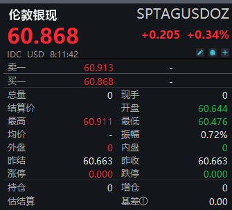 【大河财立方消息】12月9日,贵金属集体走高,截至10日早盘,伦敦银现报60.868美元/盎司,日内涨0.34%。今年以来,银价已经上涨了近110%。消息面上,周二美盘交易时段,交易员在美联储利率决议前夕保持乐观情绪。