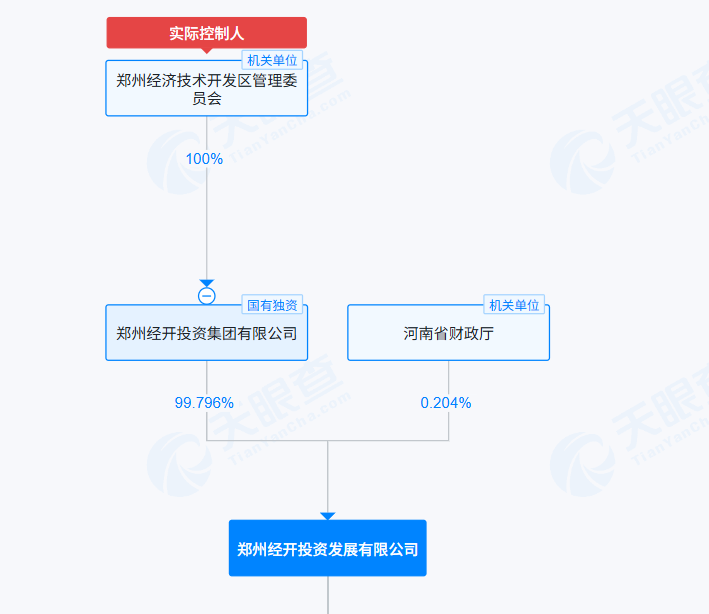 官网显示,郑州经开投发公司成立于1998年12月,是经开区土地开发整理一级开发商,是经开区重要的投资建设主体、融资平台,是河南省内第一家AA+区级平台公司。公司注册资金人民币200亿元整,资产规模约440亿元。股权结构上,该公司控股股东为郑州经开投资集团,实控人为郑州经开区管委会。