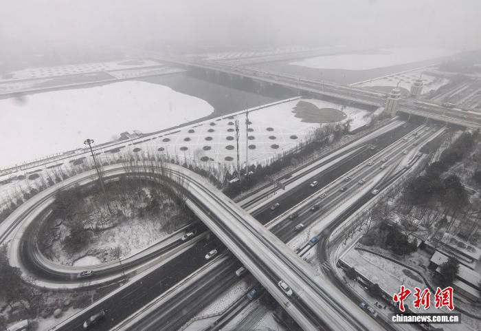 12月12日上午,山西省会太原迎泽大桥周边雪景。 中新社记者 李庭耀 摄