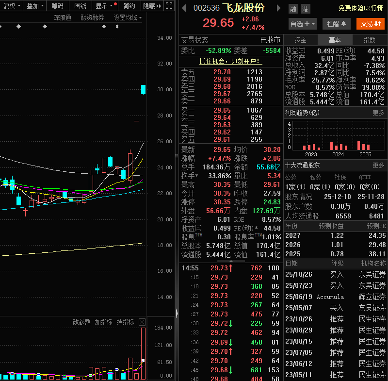 此前,11月22日,飞龙股份曾披露控股股东减持股份预披露公告。宛西控股计划自2025年12月13日~2026年3月12日,以大宗交易方式减持飞龙股份股票不超过11,495,700股,减持比例不超过总股本的2%。