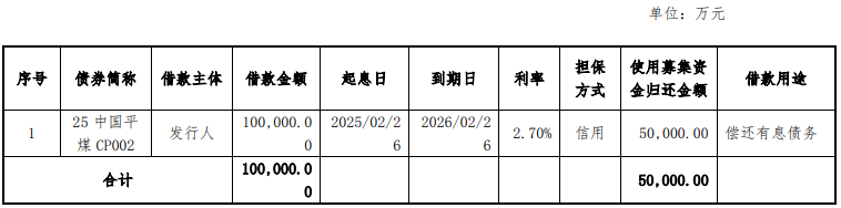 本期债券发行总额5亿元,利率1.94%,期限365日,所募资金拟全部用于偿还有息债务“25中国平煤CP002”。簿记管理人、主承销商为国泰海通。
