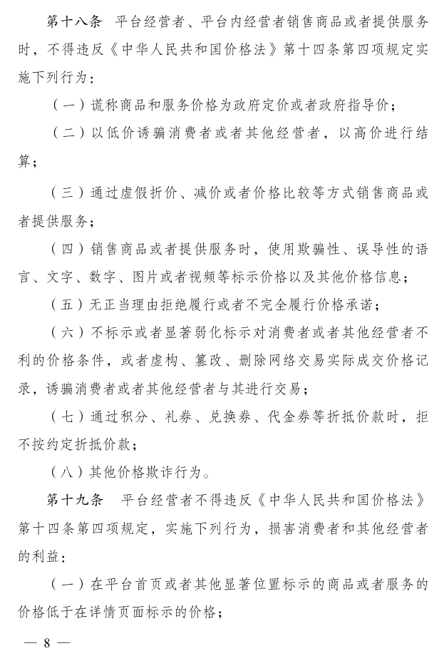 【大河财立方消息】12月20日,国家发展改革委、市场监管总局、国家网信办发布《互联网平台价格行为规则》。