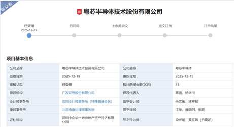 12月19日,粤芯半导体技术股份有限公司(以下简称“粤芯半导体”)的创业板IPO申请获深交所受理。