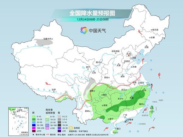 后天,新疆沿天山地区、西藏东南部、川西高原等地部分地区有小雪或雨夹雪。江汉南部、江南、西南地区东部、华南北部和西部、海南岛东部、台湾岛等地部分地区有小雨,其中,湖南中南部、江西中部和东北部、浙江西南部、广西西南部和北部等地部分地区有中雨。