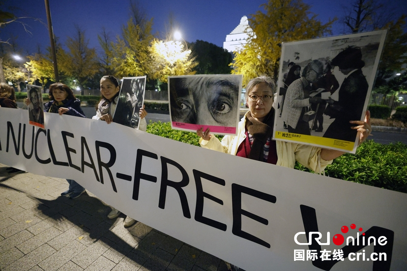 日本民众近日举行集会,对高市早苗内阁拟修改“无核三原则”表示强烈抗议。(图片来源:东方IC)