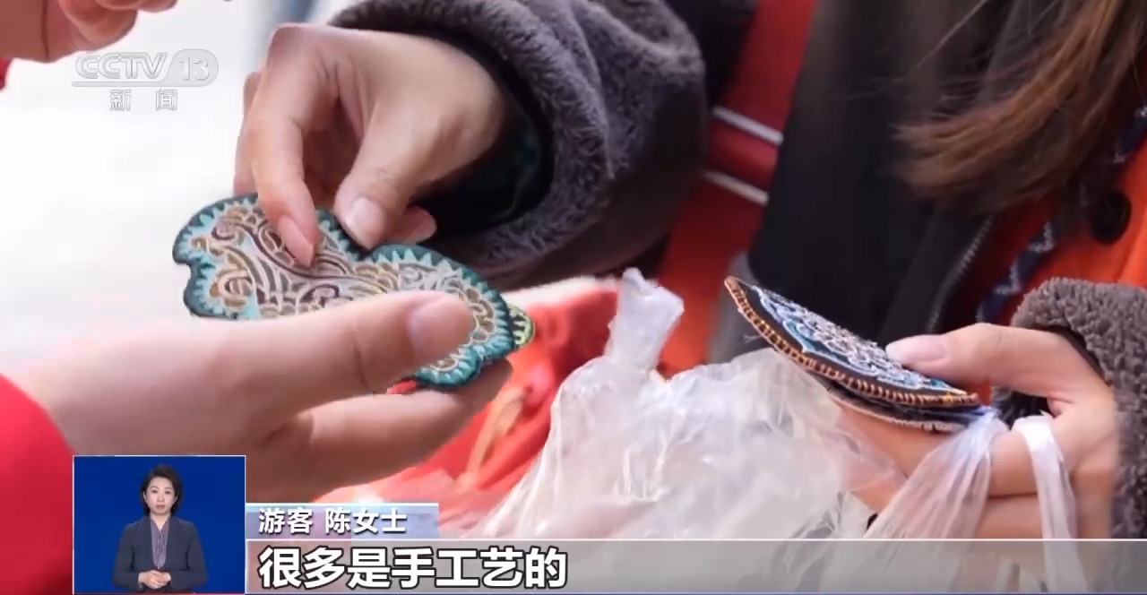 游客陈女士:就买了一个包、一幅画,然后还有两个贴片。很多是手工艺的。