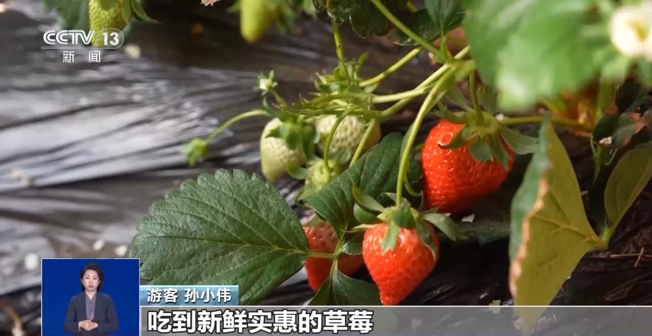 游客孙小伟:孩子喜欢吃草莓,我们就带着孩子来采摘,既能带孩子出来玩,体验采摘乐趣,又能在家门口吃到实惠新鲜的水果,的确是个好地方。