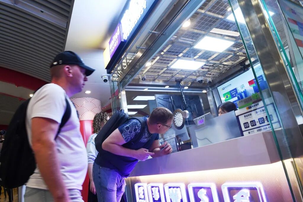 外籍游客在地铁王府井站咨询兑换外币业务