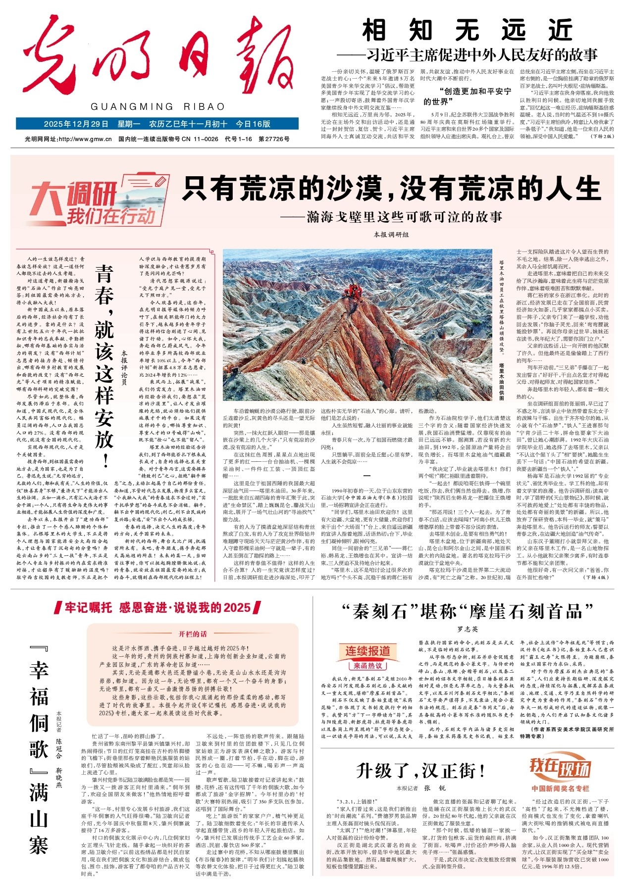 尽管岁月染白了双鬓,风沙吹皱了脸庞,辛劳摧弯了腰杆,但他们心里依然有一团火。他们想朗声对青年们这样说:我们这辈子,无怨无悔,因为我们不负岁月,不负青春!年轻人,你们呢?