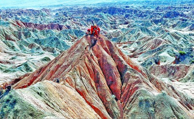 第一次带队来到秋里塔格山时,董刚禁不住倒抽一口凉气:眼前是寸草不生的断崖绝壁,数百米的落差直上直下,锯齿一样的山峦、刀锋一样的山梁,让人胆战心惊。难怪被称为“刀片山”!
