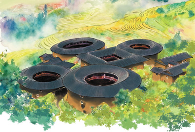 漳州市南靖县田螺坑土楼群。马睿姗绘