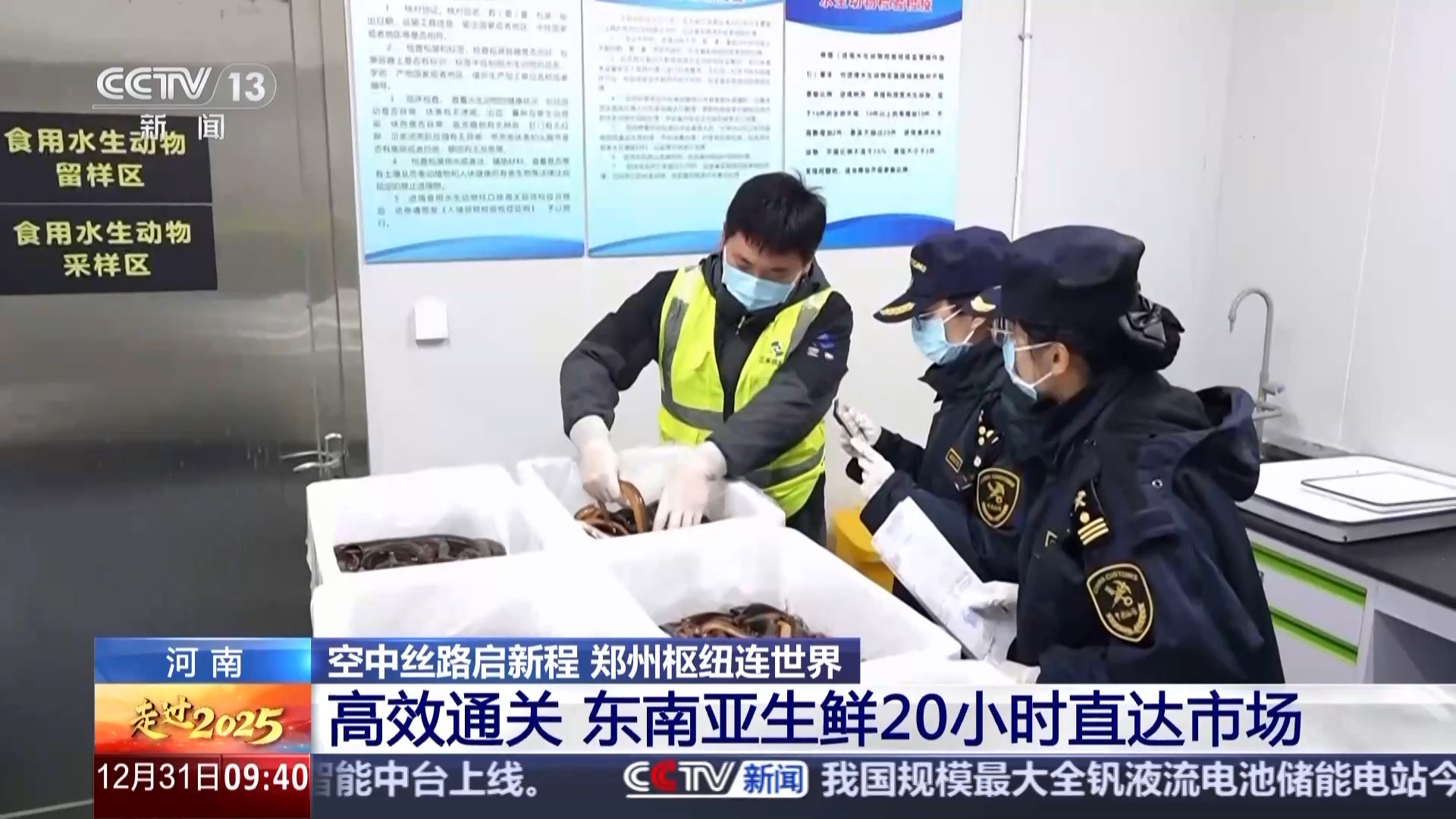 现在正是东南亚的黄鳝大量上市的季节,前两天正好有一批黄鳝抵达,在这里经过中转之后要继续发往上海。这些黄鳝从东南亚起运,到出现在上海的市场上,仅仅需要20个小时左右。为了能让消费者更早买到更新鲜的产品,郑州机场海关对生鲜货物通关的优先级非常高,为生鲜货物开设了专属查验窗口,查验与出货环节无缝衔接,20分钟内就能完成查验,货物就可以从机场提离,可以说是把时间压缩到了极致。
