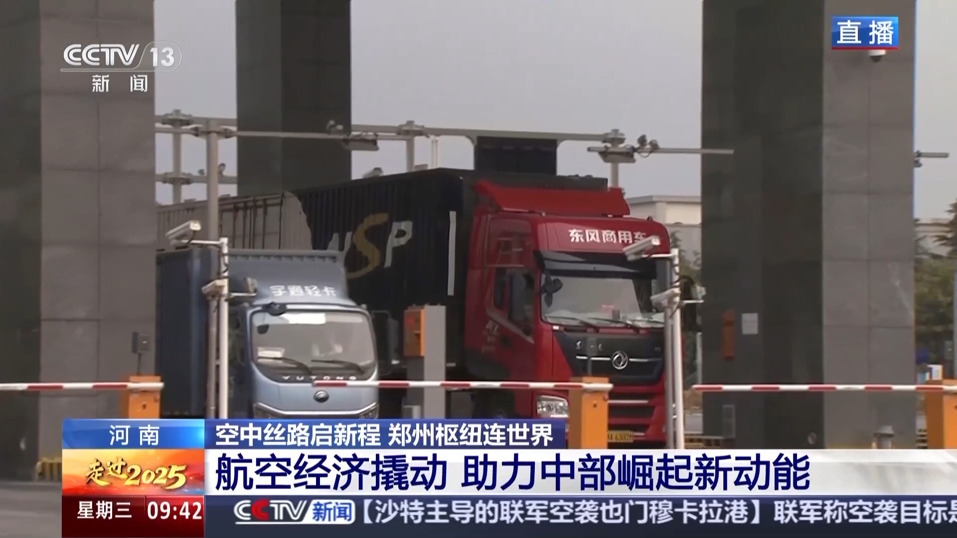 总台央视记者王晨:我现在是在郑州新郑综合保税区的主卡口。在我身后有10条大货车的专用通道。我们从新郑海关了解到,今天预计有1500辆左右的大货车要从这里进出,运送的货物主要有电子产品、服装以及各种跨境电商货物。现在这里的一些大货车,就满载着从欧洲空运来的快时尚服装,还有来自世界各地的化妆品,它们将在这里分拨到全国各地。