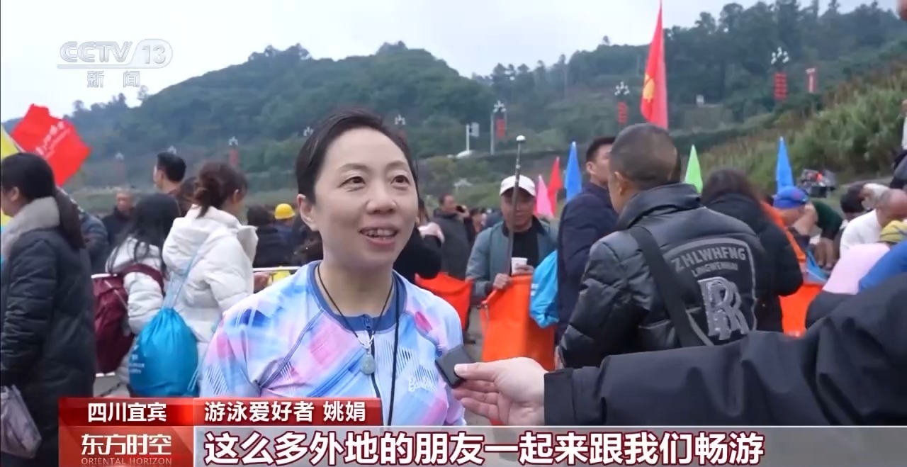 游泳爱好者姚娟:这么多外地的朋友一起来跟我们畅游,非常开心,收获健康、收获友谊,也收获了快乐。