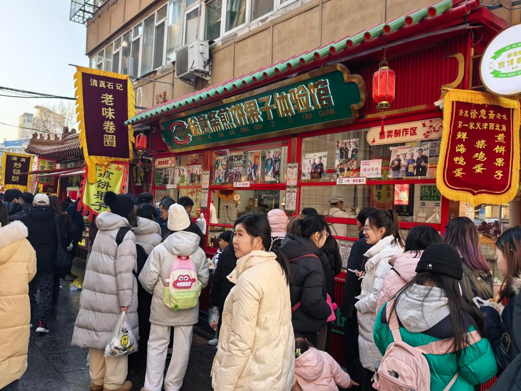 徐意斋煎饼果子体验馆门口,游人如织。新华社发