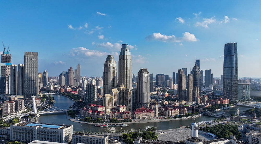 2025年7月16日无人机拍摄的天津海河沿线。新华社记者孙凡越 摄
