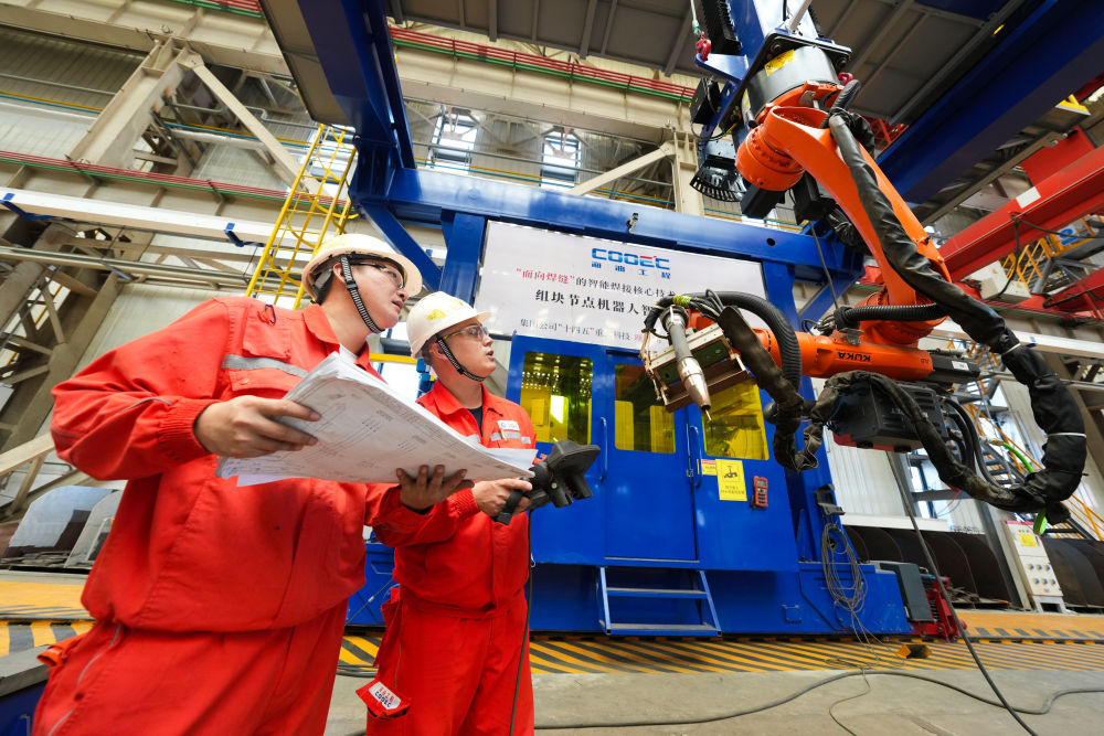 这座拥有多个智能车间的“智能工厂”,见证了天津传统产业发展理念变迁。作为海洋石油工程股份有限公司天津智能制造分公司副总经理,王金源对此更有发言权,通过智能设备引入、能源精益化管控等方式,全厂全年可节电300余万千瓦时,节水7000立方米,减少碳排放2000余吨。