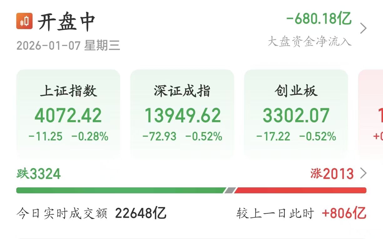 【大河财立方消息】1月7日,A股冲高回落,三大指数午后集体翻绿。