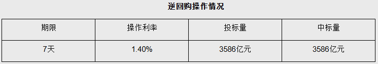 【大河财立方消息】1月13日,央行开展3586亿元7天期逆回购操作,投标量3586亿元,中标量3586亿元,操作利率为1.40%。今日有162亿元7天期逆回购到期,7天期逆回购净投放3424亿元。另有6000亿元6个月期买断式逆回购到期。