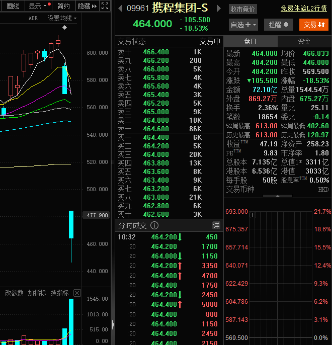 截至发稿,港股携程集团跌幅18.53%,美股携程收跌17.05%。两者均跳空低开,放量下跌。