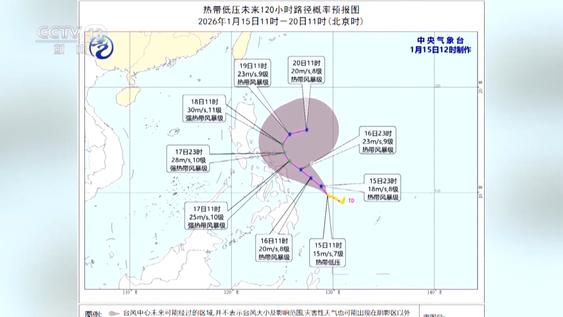 中央气象台台风与海洋预报中心首席预报员周冠博介绍,目前菲律宾以东的热带低压,预计将于未来的12小时内加强为今年的1号台风。