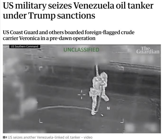 中新网1月16日电 据英国《卫报》报道,当地时间15日,美军方面宣布,美国在加勒比海扣押了又一艘油轮。
