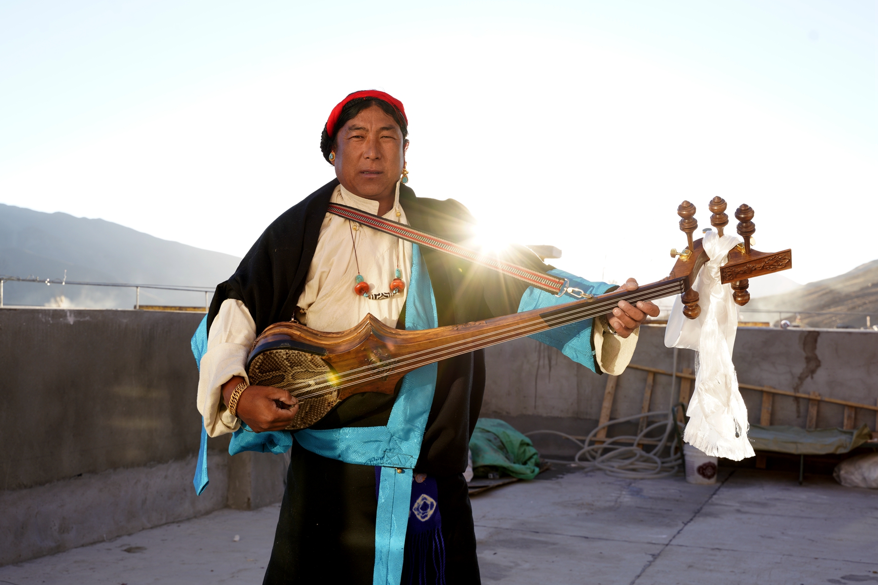 拍摄日,阳光清澈,天空湛蓝。村民们穿上了最隆重的藏装,女人发间的珊瑚与绿松石流淌着温润的光泽。许多老人被子女小心搀扶而来,他们的眼神里有局促,有陌生,也有隐约的期待。