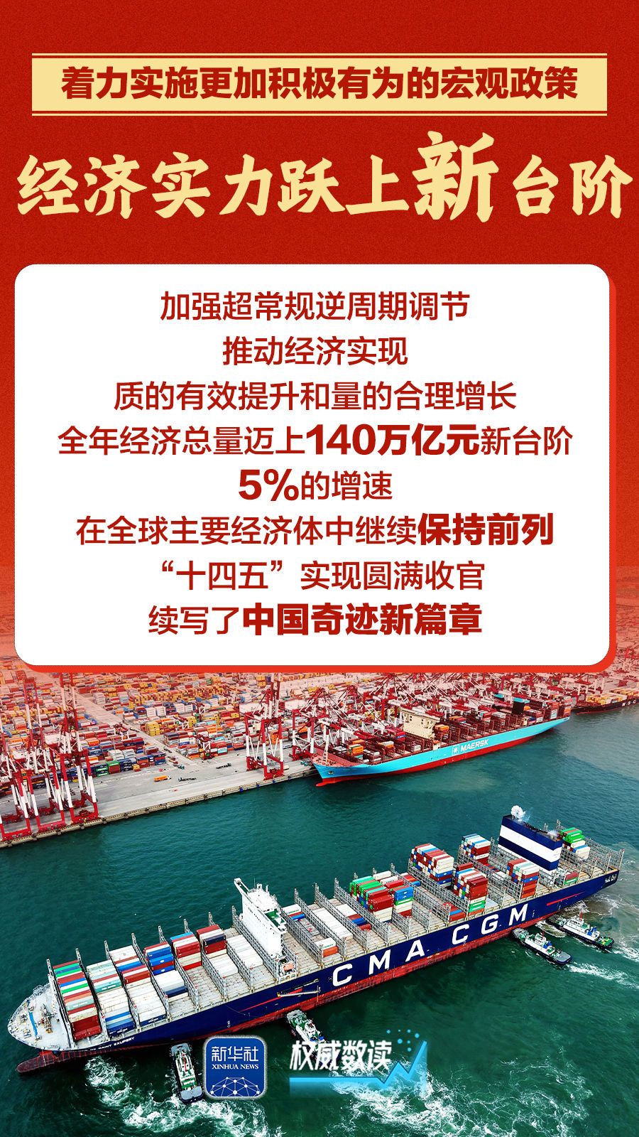 经济实力跃上新台阶、新质生产力发展取得新突破、改革开放迈出新步伐、区域城乡发展打开新局面、民生福祉实现新提升。在20日国新办新闻发布会上,国家发展改革委副主任王昌林用五个“新”概括2025年经济工作。跟随海报一起来看。