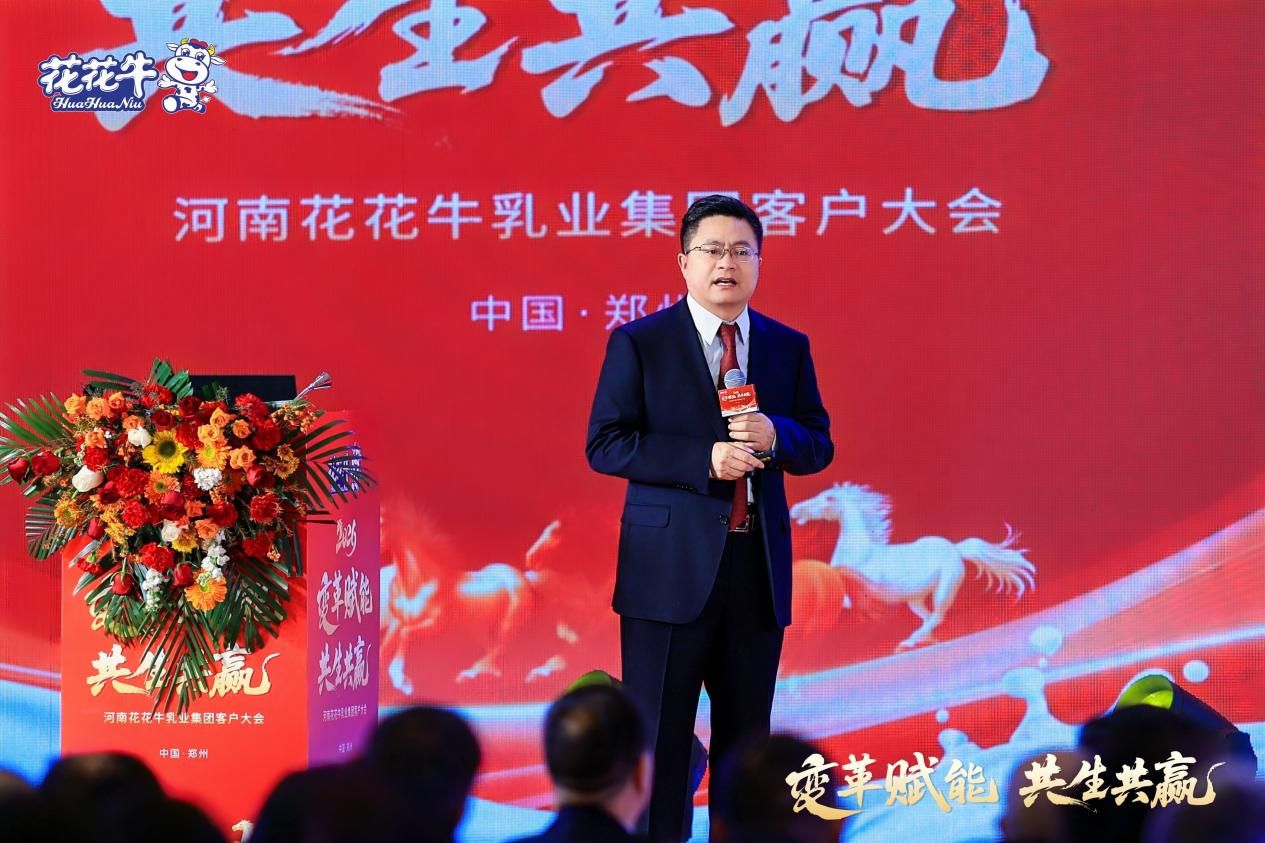 郑州大雪前,寒冷提前到达,但这里的气氛热烈且充满希望。1月18日,河南花花牛乳业集团2026年度客户大会现场,气氛因一个主题而涌动——“变革赋能 共生共赢”。240多家核心经销商、配送商伙伴与花花牛乳业集团共聚一堂,共谋发展大计。
