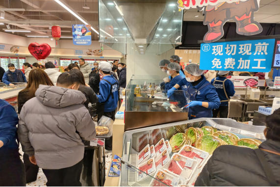 这种场景创新也引发行业跟风:大张、鲜风生活等本土商超迅速搭建覆盖第三方平台、自有小程序、社区社群的立体线上布局,跟进即时零售趋势。越来越多超市在店内增设餐饮区,现场蒸馒头、烙大饼、提供快餐熟食,“餐超”模式成为吸引客流、提升消费频次的重要手段。