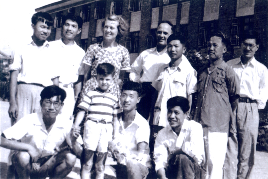 1957年,伊莎白·柯鲁克与学生们留影,柯马凯在母亲身前。来源:受访者供图