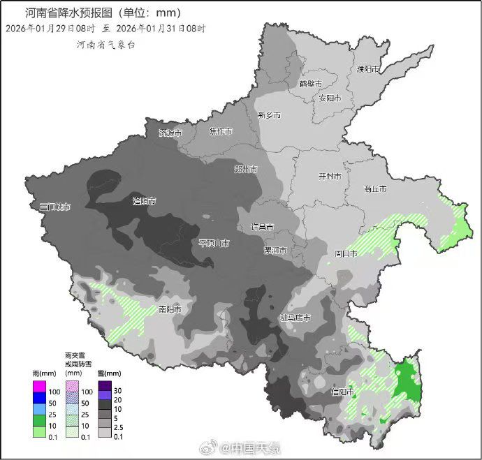 【大河财立方消息】据中国天气,1月29日起,在中东部新一轮雨雪中,河南西部的雪依然会下得很大,河南、陕西、山西三省交界一带将成降雪中心,部分地区有中到大雪,局地暴雪。