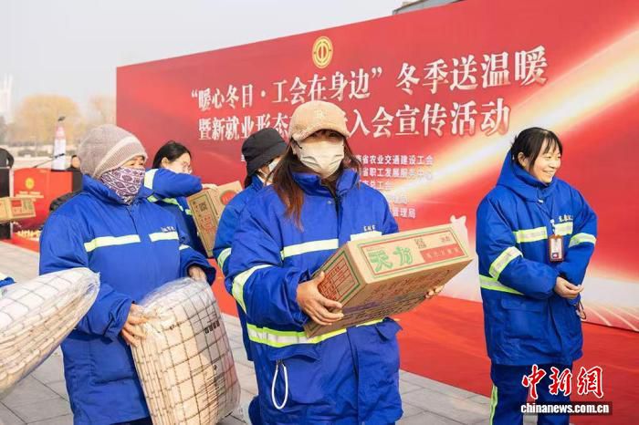 图为“暖心冬日·工会在身边”冬季送温暖暨新就业形态劳动者入会宣传活动在河南郑州举行。王威 摄