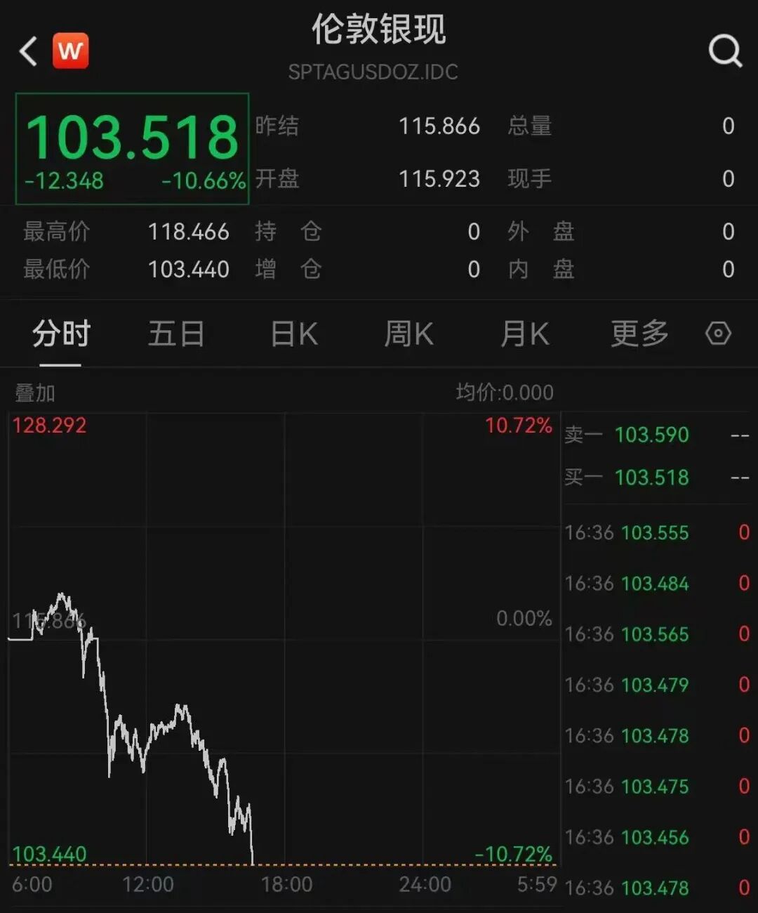 【大河财立方消息】1月30日,现货黄金、白银持续下挫。截至发稿,现货黄金跌超5%,失守5100美元/盎司关口。现货白银跌超10%,报103.518美元/盎司。纽约期银跌超7%。