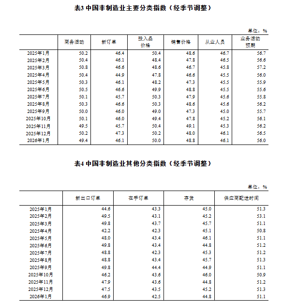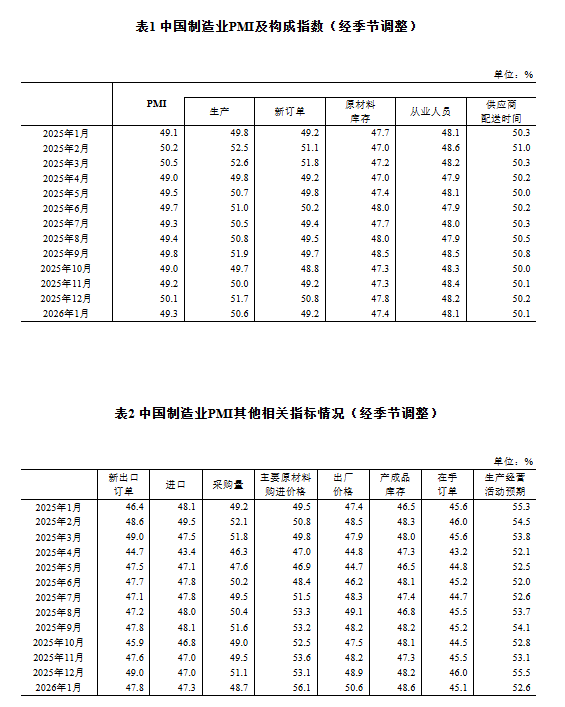 【大河财立方消息】1月31日,国家统计局发布2026年1月中国采购经理指数运行情况。
