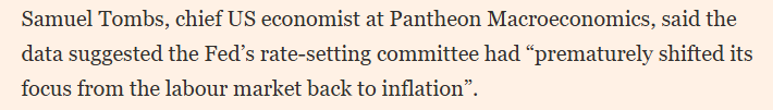 报道还援引万神殿宏观经济咨询公司经济学家塞缪尔·汤姆斯的话称,美国劳工部的数据表明,美联储联邦公开市场委员会 “过早地将注意力从劳动力市场转向了通胀问题”。