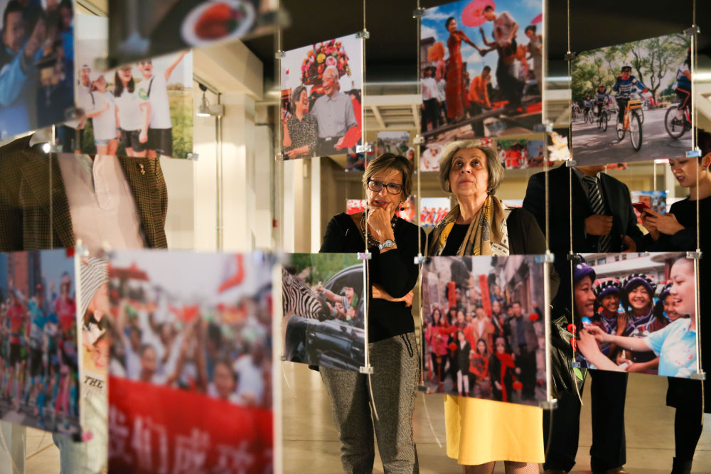 2019年3月22日,参观者在意大利罗马举行的“千亿像素看中国——城市与人”互动主题展上观看中国人生活面貌的照片。展览不仅展示了中国大城市的发展变迁、普通人的生活场景等,还聚焦中国和意大利经贸人文交往,讲述中意两国的友好故事。