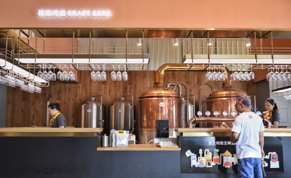 2020年7月17日,一位市民在成都国际铁路港亚蓉欧国家(商品)馆意大利馆体验精酿啤酒。