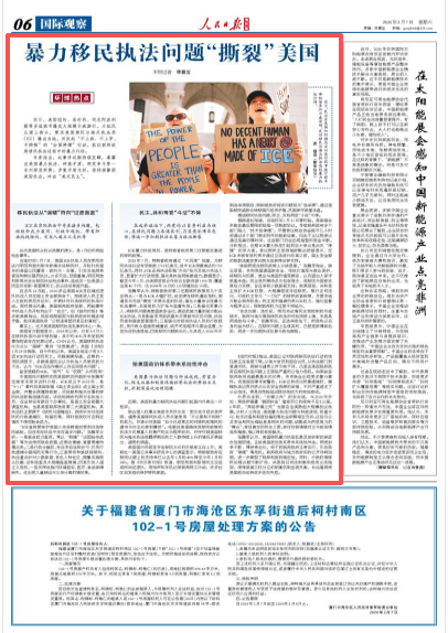 近期,美国的暴力移民执法问题引起国内外舆论一片批评。