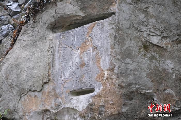 2月5日,吴越郊坛遗存的吴越国王钱镠的摩崖题刻。曹丹 摄