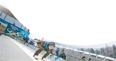 中国队运动员蔡雪桐在单板滑雪女子U型场地技巧资格赛中。本报记者 王 亮摄