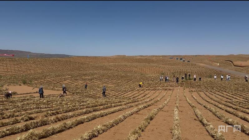 中卫市腾格里沙漠锁边工程现场(央广网记者 齐平 摄)