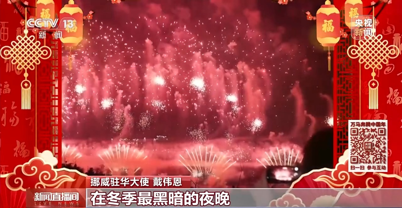 挪威驻华大使戴伟恩:人人都需要属于自己的仪式和节日,和亲友相聚、享用美食,回顾过去一年、憧憬新的一年。在这方面,挪威和中国是一样的,我们会同自己最喜爱、最亲近的人相伴,包括家人和朋友,会准备特色美食。还有一个活动也是受到中国春节的启发,我们会在元旦放烟花。在冬季最黑暗的夜晚,我们就会点亮中国的烟花。
