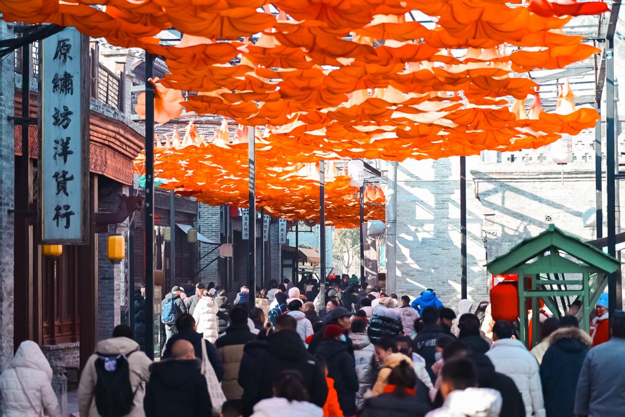 在南阳卧龙岗武侯祠,“诸葛亮”正摇着羽扇和游客对诗。在三门峡陕州地坑院,地平线下的古村落亮起万盏花灯,游客们仿佛穿越般地“在坑里过年”。在新乡五龙山,遍布园区的封神榜、民俗传说、马年吉祥等主题NPC从人群中穿行而过。在建业电影小镇,白天,《绿野仙踪》《瓜果奇遇记》等童趣满满的巡游互动节目接连上演,《有趣人类派对》让街头化作舞台,每位游客都是“戏中人”;夜幕降临,舞火龙、水上打铁花、火壶惊艳亮相,一系列非遗表演轮番登场,燃动马年春节。