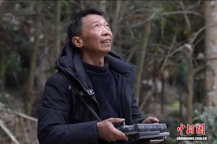 四川北川县小园村村民杨修林正在飞无人机。 受访者供图