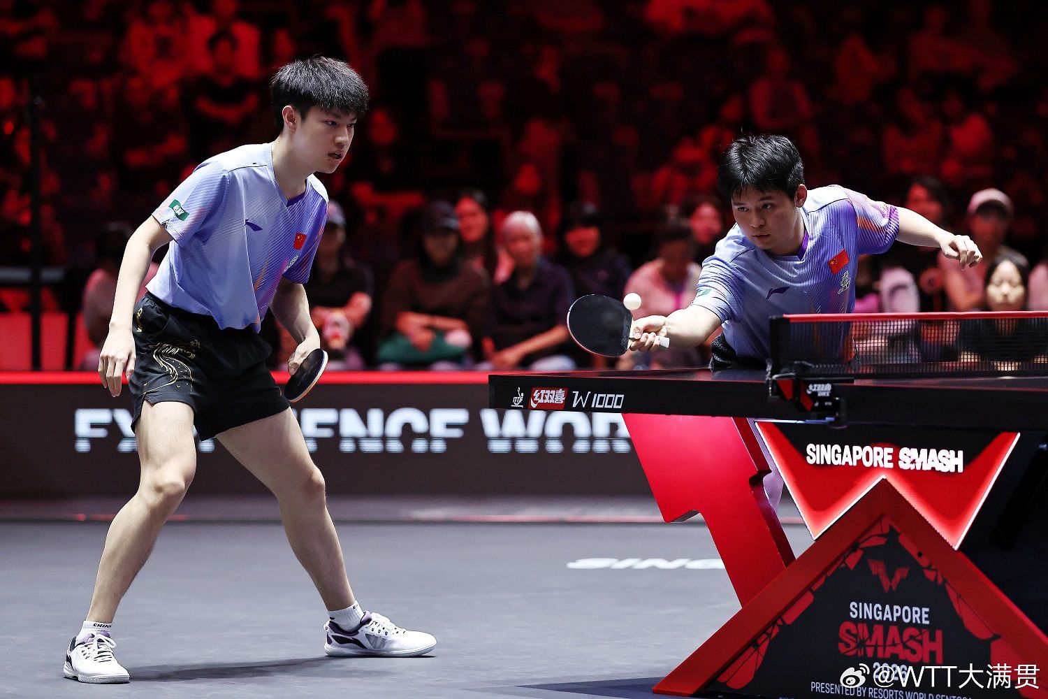 男双半决赛,国乒组合林诗栋/黄友政以3比0战胜法国组合埃斯特班·多尔/弗洛里安·布尔拉萨德,将在决赛对阵来自法国的勒布伦兄弟。